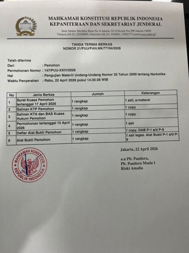 Permohonan ini menandai babak baru dalam perjuangan menjamin hak rehabilitasi bagi pecandu narkotika di Indonesia sebagai hak konstitusional yang tak dapat dikesampingkan, bukan sekadar diskresi hakim.